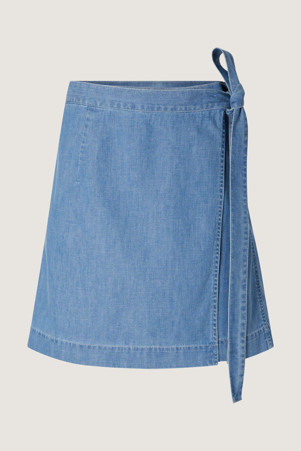Short light blue cotton wrap skirt with topstitched details
