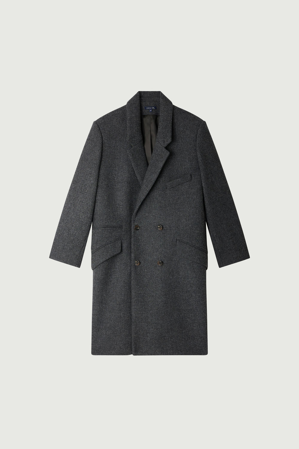 Heather grey double tweed long coat dark mottled grey